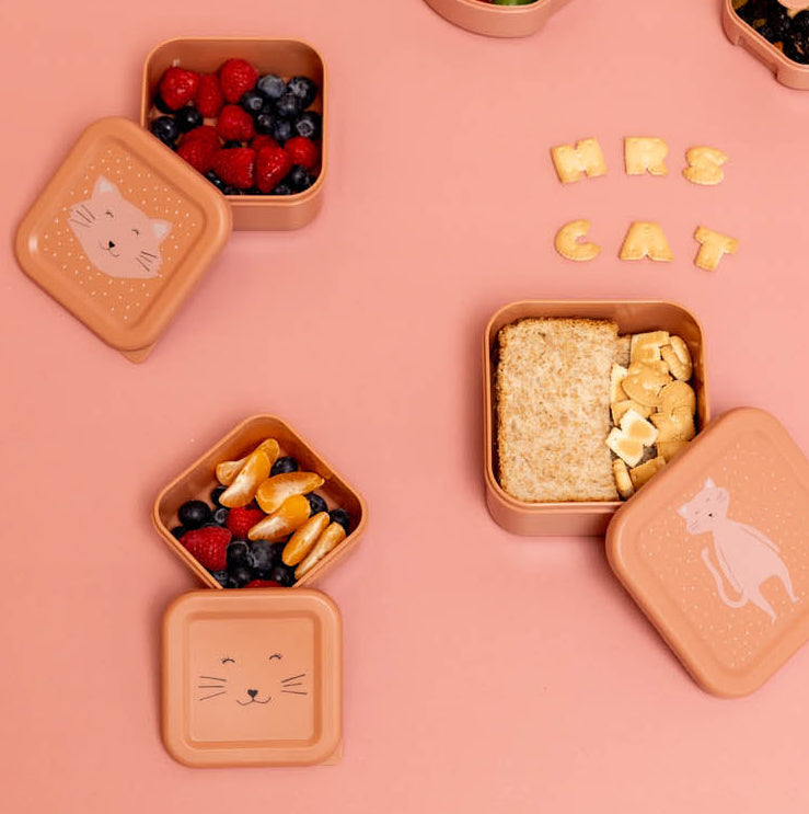 Neem je favoriete snacks mee naar school of onderweg, samen met je favoriete dierenvriendje. Deze set van drie snackdoosjes is ideaal voor kleine én grote tussendoortjes. Na gebruik schuif je ze eenvoudig in elkaar, zodat ze weinig ruimte innemen in de kast.